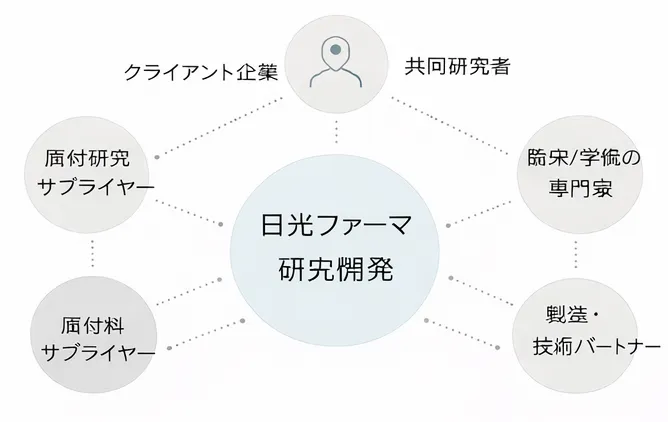 日光ファーマでは、分野横断型の研究体制を採用しています。